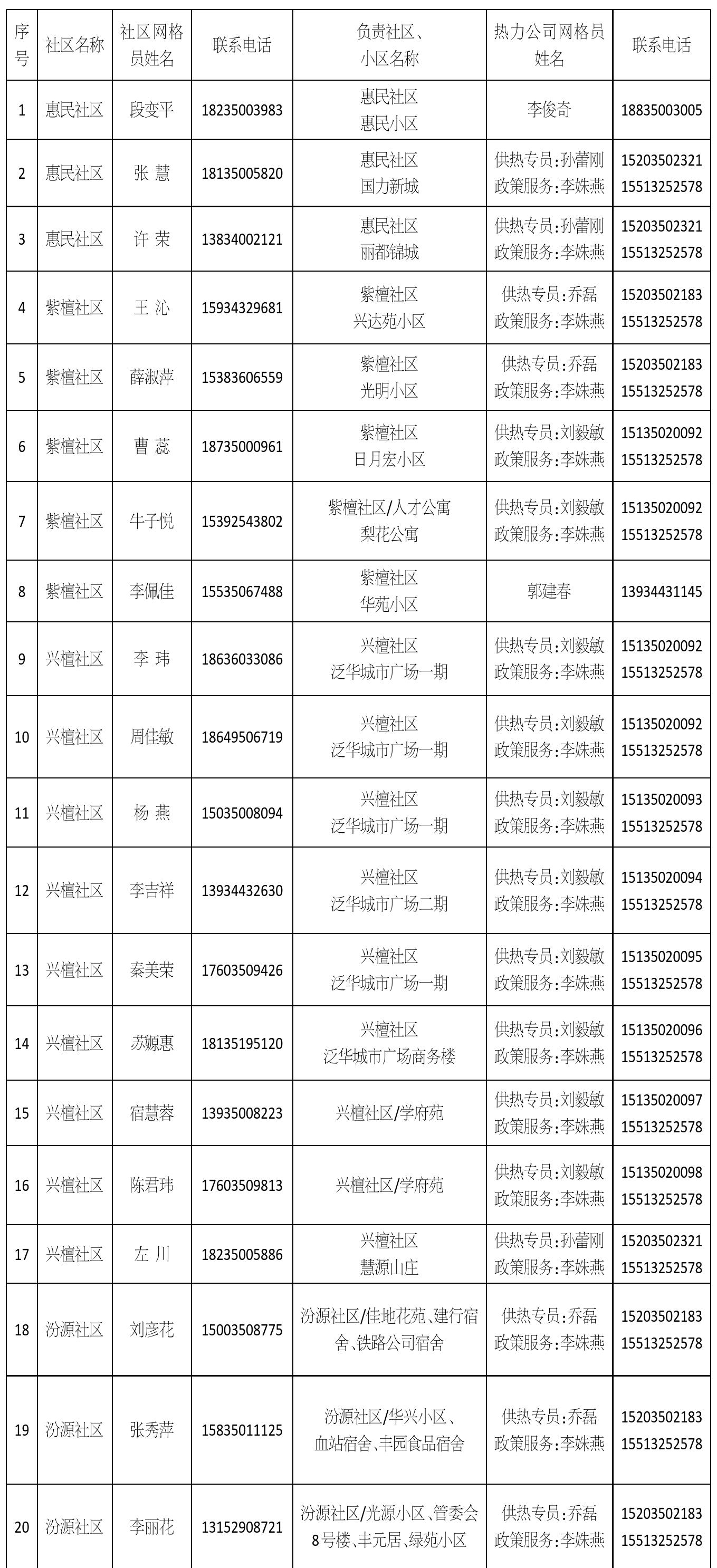 忻州城區(qū)供熱一片區(qū)網(wǎng)格員信息公示