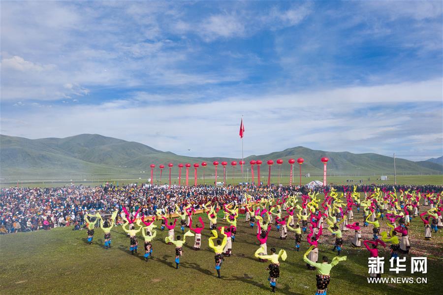 8月6日,當(dāng)?shù)厝罕娫诒硌菸璧浮睹利惖慕瘃R色達(dá)》。8月6日至8日,四川甘孜山地文化旅游節(jié)系列活動(dòng)之一的色達(dá)金馬文化節(jié)在四川省色達(dá)縣扎青塘草原舉辦。當(dāng)?shù)厝罕娚碇?jié)日盛裝載歌載舞、歡聚一堂,文藝表演、賽馬、傳統(tǒng)服飾展演、非遺展示等活動(dòng)精彩紛呈。 近幾年,當(dāng)?shù)卣罅ν苿?dòng)文旅、農(nóng)旅、牧旅融合發(fā)展,全域旅游豐富多彩,成為當(dāng)?shù)孛撠毐夹】档闹匾ナ帧P氯A社記者 江宏景 攝