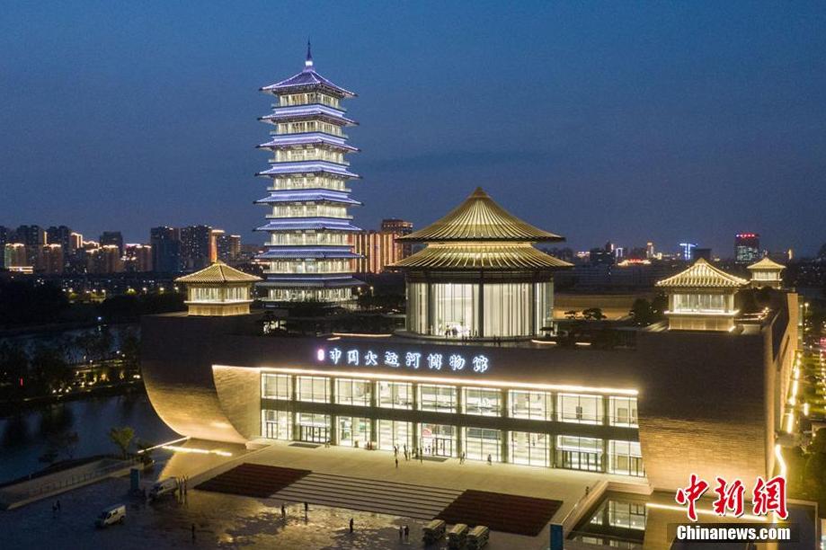 6月15日,江蘇省揚州市,中國大運河博物館流光溢彩“盛裝”亮相。揚州中國大運河博物館坐落于揚州三灣古運河畔,由展館、內庭院、館前廣場、大運塔和今月橋五部分組成,將于6月16日正式開館。揚州是中國大運河的原點城市和申遺牽頭城市,2500多年前吳王夫差在揚州開鑿古邗溝,拉開了中國大運河的序幕。圖為中國大運河博物館流光溢彩“盛裝”亮相。 (泱波 攝)