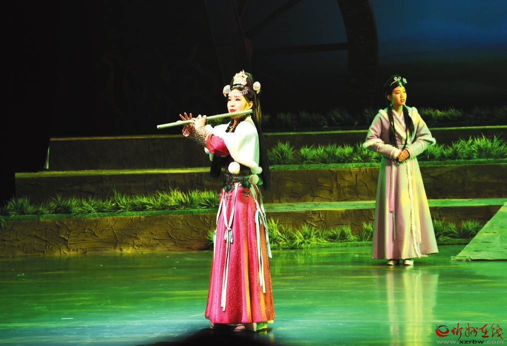 《滹源雅韻》以故事性手法生動講述了北魏孝文帝拓跋宏的四女兒誠信公主與其愛人崔恂之間的動人愛情傳說,全劇共分《得喜》《成長》《抗婚》《逃離》《尾聲》五幕,環(huán)環(huán)相扣,層層遞進(jìn)。通過跌宕起伏的故事情節(jié)、優(yōu)美動聽的音樂旋律、凝練通俗的臺詞旁白、一招一式的形體動作和美輪美奐的舞美設(shè)計,生動勾勒出主人公敢于打破傳統(tǒng)枷鎖、反抗婚姻包辦、追求美好愛情的浪漫勇敢形象。伴隨著演員精彩的演繹,臺下觀眾無不深受感染。用千年前的樂器彈奏,舞姿也更加飄逸、曼妙起來。這不單是一場表演,更讓觀眾有了觸摸歷史、對話歷史的機會。