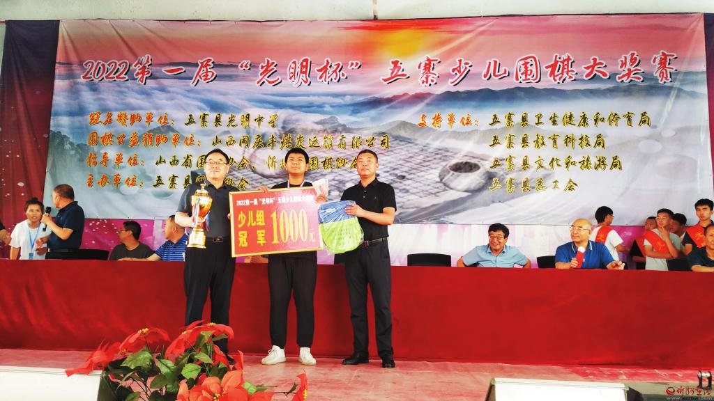 這次大獎賽由五寨縣圍棋協(xié)會主辦,五寨縣光明中學(xué)冠名贊助,山西同慶豐煤炭運銷有限公司贊助支持。開幕式上,山西省圍棋協(xié)會向五寨縣圍棋協(xié)會捐贈了價值8500元的智能一體機(jī)一臺,忻州市圍棋協(xié)會向五寨縣圍棋協(xié)會頒發(fā)了“立足五寨沃土,培養(yǎng)圍棋人才”的獎牌,并捐贈了價值7200元的高檔圍棋凳40個。山西省圍棋協(xié)會向五寨縣光明中學(xué)捐贈國學(xué)經(jīng)典書籍一套,山西人民出版社社長姚軍(圍棋5段)向大賽組委會贈送書法作品一幅。