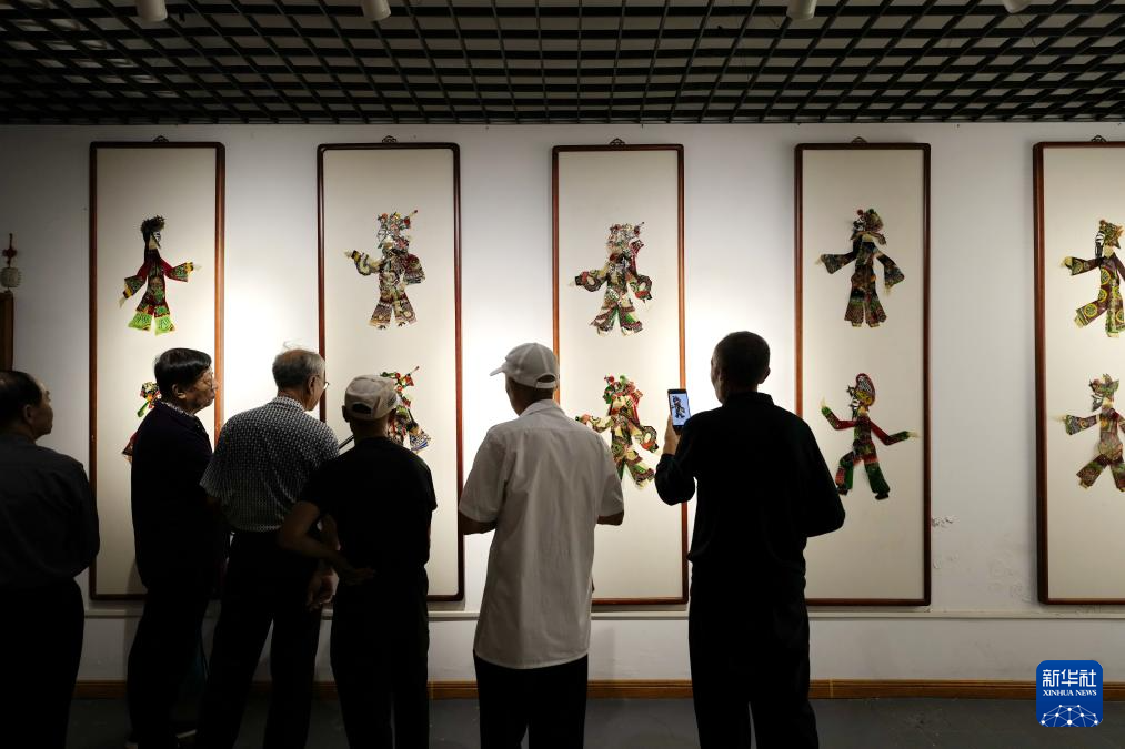 9月16日,市民在玉田縣“非遺會客廳”展室內(nèi)參觀展出的皮影人。