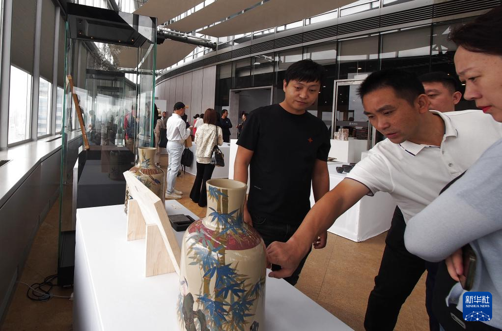 當(dāng)日,第五屆上海-云南建水國際陶瓷柴燒藝術(shù)節(jié)陶瓷柴燒作品展在上海中心開幕,共展出190件原創(chuàng)柴燒作品。新華社記者 任瓏 攝