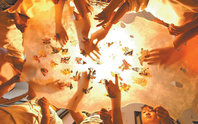 走到幕布后,只見(jiàn)兩雙手舉著人物皮影,迅速、連貫地變換動(dòng)作,配合默契——國(guó)家級(jí)非遺項(xiàng)目孝義皮影戲傳承人侯建川和搭檔正在表演。“現(xiàn)在我們有了更多展示皮影藝術(shù)的舞臺(tái),我也帶出了很多徒弟,讓這項(xiàng)傳統(tǒng)技藝能更好傳承下去?!焙罱ùǜ袊@。