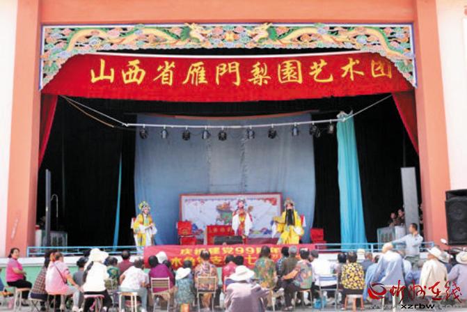 本報(bào)訊 薪火相傳梨園情,送戲下鄉(xiāng)頌黨恩。7月3日上午10時(shí)許,代縣峨口鎮(zhèn)上木角村委會(huì)大院的“瑞祥舞臺(tái)”上,鑼鼓鏗鏘,喧樂縈耳,熱鬧非凡,代縣雁門梨園藝術(shù)團(tuán)(原代縣峨口退休老干部戲迷樂開心藝術(shù)團(tuán))正在這里演出,與該村黨員干部群眾共慶黨的99周年華誕,歌頌黨的恩情。演職人員以群眾喜聞樂見的形式,抒發(fā)老干部愛黨、愛國,永遠(yuǎn)跟黨走的豪情壯志。