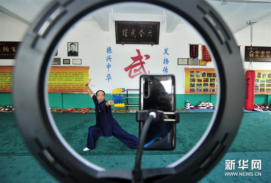 8月5日,石同鼎直播六合拳拳法。時(shí)值暑假,為減少聚集習(xí)武帶來的疫情風(fēng)險(xiǎn),同時(shí)豐富孩子們的暑期生活,六合拳第八代傳承人石同鼎在直播平臺(tái)開通了賬號(hào),每天帶領(lǐng)學(xué)生進(jìn)行網(wǎng)絡(luò)直播教學(xué)演示,通過“云端”傳承非遺文化。 今年59歲的石同鼎是泊頭六合拳第八代傳人,他自幼跟隨父親習(xí)武。2001年父親離世后,石同鼎便承擔(dān)起傳承六合拳的重任。2002年石同鼎建起六合武館,開始教徒弟習(xí)武練拳。 作為傳統(tǒng)武術(shù)中長(zhǎng)拳的一種,河北的泊頭六合拳有400余年歷史,被列入國(guó)家級(jí)非物質(zhì)文化遺產(chǎn)名錄。 “通過網(wǎng)上直播,更多的人可以了解六合拳、練習(xí)六合拳?!笔φf,他希望能把六合拳推向世界,傳得更遠(yuǎn)。新華社記者 牟宇 攝