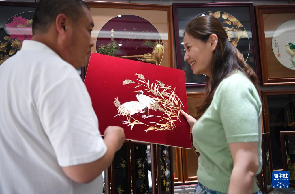 除了照顧好傳習基地的學員,夫妻倆目前還在琢磨著擴展蘆葦畫的底色,同時升級畫框,讓蘆葦畫適合更多風格的室內(nèi)場景,擴大銷路。新華社記者 張浩然 攝