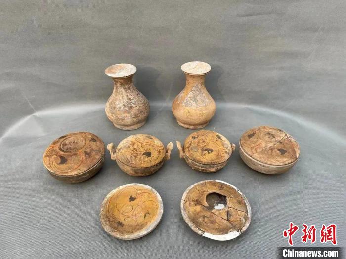 山西考古人員在襄汾縣發(fā)現(xiàn)百余座墓葬,圖為考古遺址俯拍圖。(山西省考古研究院供圖) 2020年6月至2022年7月,為配合襄汾縣經(jīng)濟(jì)開發(fā)區(qū)道路路網(wǎng)工程和標(biāo)準(zhǔn)廠房建設(shè)項(xiàng)目基本建設(shè),山西省考古研究院聯(lián)合襄汾縣文化和旅游局、襄汾縣博物館組成聯(lián)合考古隊(duì),對(duì)工程建設(shè)范圍內(nèi)所涉遺址、墓葬進(jìn)行搶救性發(fā)掘。 發(fā)掘區(qū)域以汾河為界,分為河?xùn)|、河西兩個(gè)區(qū)域,共清理發(fā)掘遺跡348處,墓葬215座。 河?xùn)|區(qū)域涉及橋子溝村、古城莊村兩個(gè)村莊,共發(fā)掘墓葬145座,其中漢代128座、宋金3座、明清15座。出土隨葬品959件,其中銅器222件、鐵器21件、陶器528件。發(fā)掘遺跡145處,出土器物115件,其中新石器時(shí)代28件、戰(zhàn)國(guó)72件、漢代15件。 河西區(qū)域涉及溫泉村、魚池村、東鄧村三個(gè)村莊,溫泉段共發(fā)掘元明清墓葬69座、北齊墓1座,出土隨葬品437件;魚池段發(fā)掘灰坑168座、房址1座、灶6個(gè),年代為春秋時(shí)期;東鄧段發(fā)掘灰坑28座、窯址2座,年代為漢代。