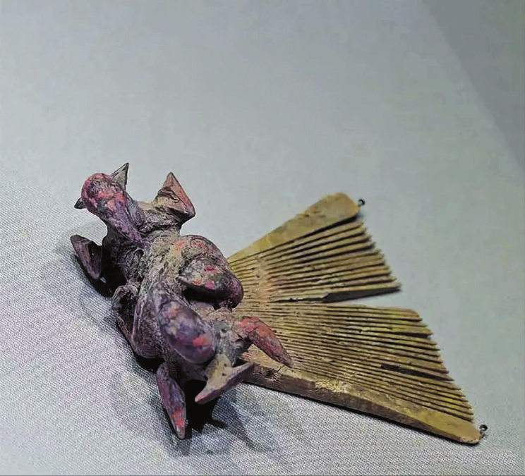 從北白鵝墓地500多件文物中精選出來(lái)的骨梳、銅盒、飾品等,大小不一、形態(tài)各異,浸潤(rùn)著時(shí)光的痕跡。銅盒里面的膏狀物經(jīng)檢測(cè)為化妝品,古代女性?shī)y容有三種顏色:白粉覆臉、黛黑描眉畫(huà)眼、朱砂或胭脂涂抹口紅。從骨梳來(lái)看女性裝飾,春秋時(shí)期已經(jīng)有骨笄等束發(fā)工具,沈從文編的《中國(guó)古代服飾研究》中也提及女子成年“及笄”。臨汾隰縣瓦窯坡墓地出土的東周骨梳,上下兩面榫卯對(duì)應(yīng),骨梳背上木質(zhì)榫接左右對(duì)稱(chēng)有一對(duì)張開(kāi)翅膀的鳥(niǎo)。周代服飾主要為上衣下裳、上衣右衽,衣服材質(zhì)多是皮毛、麻、葛等。此外東周時(shí)期,青銅鏡制作工藝日趨精美,使用頗為普遍。綜合這些元素,得以想象鏡中的燕姬著禮服、袍、裙、冠飾、玉珠等,或見(jiàn)烏黑的發(fā)髻露出一對(duì)展翅欲飛的鳥(niǎo)兒,顯現(xiàn)古代女性別致的嫵媚。