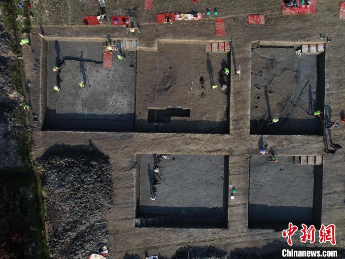 潘家耷遺址發(fā)掘場(chǎng)景航拍。寧波市文化遺產(chǎn)管理研究院供圖