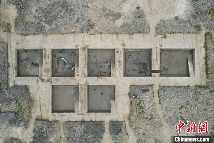 樹橋遺址III區(qū)發(fā)掘場(chǎng)景航拍。寧波市文化遺產(chǎn)管理研究院供圖