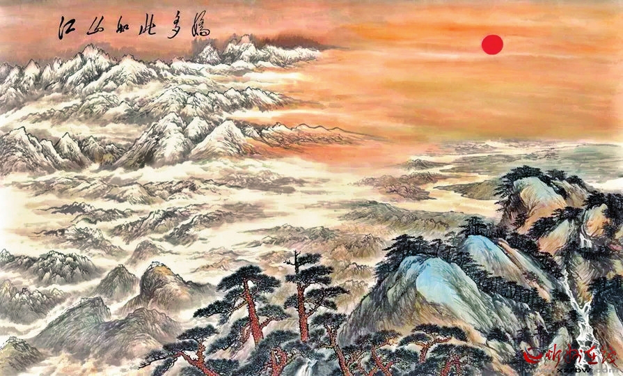 近現(xiàn)代以來,隨著人們多維的欣賞能力和畫家對自然觀察能力的深入,雪景山水畫在內(nèi)容方面有了顯著變化。這種轉(zhuǎn)型雖仍以“師造化”為基礎(chǔ),但西方繪畫理論的引進,透視、光影等要素的借鑒,使繪畫技法表現(xiàn)出新的發(fā)展趨勢。中國雪景山水畫在新歷史時期,順應(yīng)發(fā)展契機,得到振興。20世紀(jì)初,陶冷月便致力于中西融合的探索,將圓月、雪山、淡云等和諧統(tǒng)一在一片冷逸空靈的詩意世界中。他的《雪月山水圖》中,水面因月光反射閃爍著波光,這也是他營造意境的獨特手法,使之更為靈動。傅抱石一改明清輕柔疏淡的氣息,彰顯民族振奮的活躍力。他與關(guān)山月合作繪成的《江山如此多嬌》,將詩詞中“北國風(fēng)光,千里冰封,萬里雪飄”的壯闊場景表現(xiàn)得淋漓盡致。