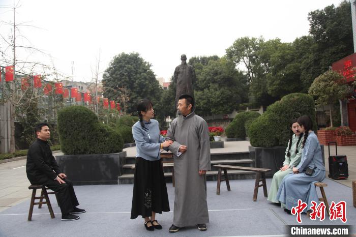 張瀾在教育子女時(shí)誕生了很多有意義的小故事,我們選取了其中幾個(gè),編排成15分鐘的情景劇。情景劇這種形式,第一個(gè)優(yōu)點(diǎn)是時(shí)間短,游客來紀(jì)念館參觀——預(yù)計(jì)參觀1個(gè)小時(shí)吧,花15分鐘看這出劇,輕輕松松就能看完;第二個(gè)優(yōu)點(diǎn)是不占地方,我們一般在紀(jì)念館的銅像廣場(chǎng)演出,下雨的話就改到展廳里做室內(nèi)演出。我們這兒是古建筑,在里面演出是很有感覺的。