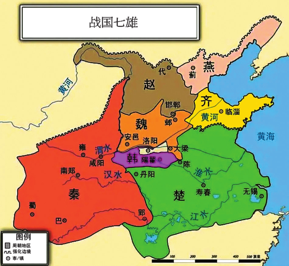 三家分晉后,韓、趙、魏三國不再幅員遼闊。魏國“地方不至千里,卒不過三十萬。地四平,諸侯四通,條達輻輳,無有名山大川之阻”。韓處天下之咽喉,為戰(zhàn)國七雄最弱,深陷“八面受敵”之境。趙領土雖大,但四周有燕、魏、秦、韓等國,儼然為“亡國之形”。三晉雖都屬戰(zhàn)國七雄,然而地理條件引發(fā)的危機更大,若不圖強必將亡國,自然得落實利國又利眾的法治。