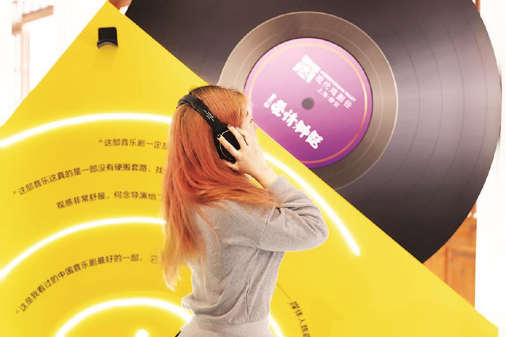 《愛(ài)情神話(huà)》限時(shí)快閃店內(nèi),市民游客正在“影音室”欣賞音樂(lè)劇唱段。(主辦方供圖)