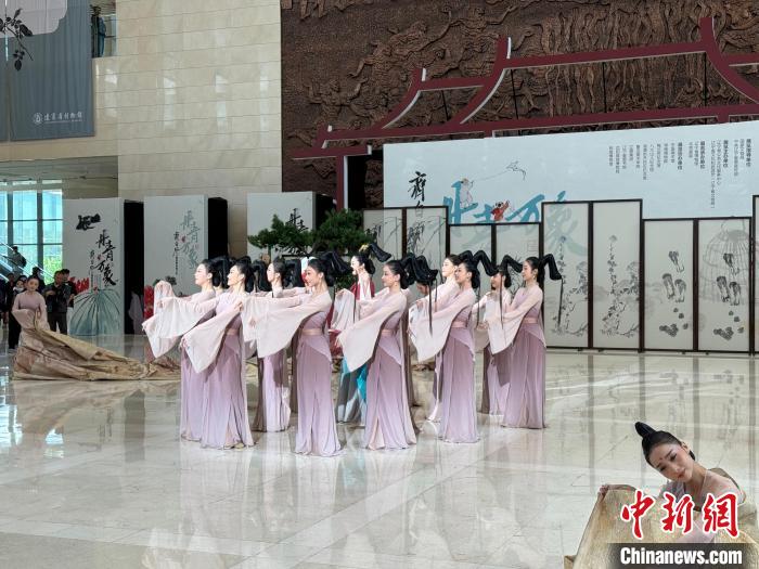 5月4日,舞蹈作品《洛神賦圖》以“快閃”形式亮相遼寧省博物館,吸引游客圍觀。 中新社記者 韓宏 攝