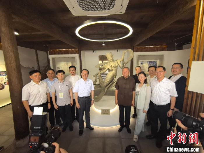 “資華筠舞蹈藝術(shù)館”開館儀式16日在浙江德清新市古鎮(zhèn)舉行。圖為參加開館儀式的嘉賓為資華筠雕塑揭幕。(主辦方供圖)