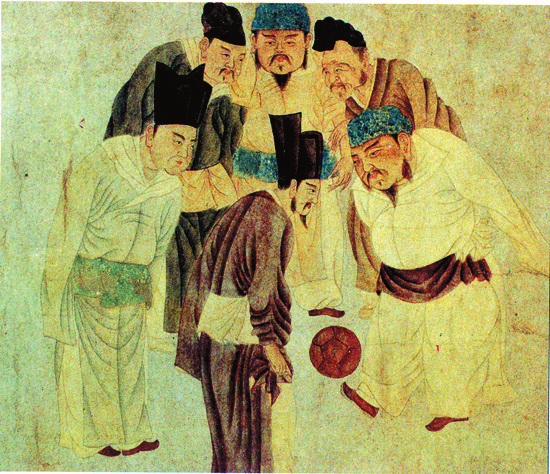 足球在中國古代被稱為“蹴鞠”,又名“蹋鞠”,“蹴”“蹋”意為踢,“鞠”即球,連在一起便是踢球之意。蹴鞠相傳是黃帝發(fā)明的軍事訓(xùn)練項目,西漢劉向《別錄》有言,“蹴鞠,黃帝作,蓋因娛戲以練武士”,通過踢球鍛煉士兵腿部力量。考古學(xué)家推測,黃帝時期的足球極有可能是石球。黃河流域山西、陜西、河南的新石器時代遺址中,出土過很多磨制光滑的石球,一定程度上印證了黃帝軍隊踢石球的推測。