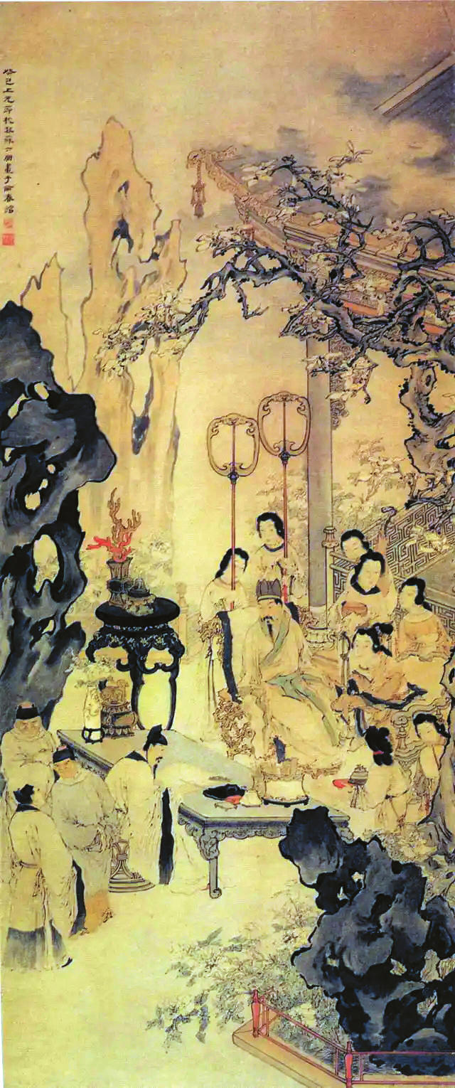 唐人李濬的《松窗雜錄》載,李白在長安任翰林待詔時,一日宮中牡丹綻放,唐玄宗與楊貴妃前往賞花,找來李龜年等人奏樂歌唱。但玄宗看了歌單,覺得都是些過氣的舊曲子,配不上眼前的名花美女,就讓李龜年趕快去找李白填新詞。當時李白宿醉未醒,趁著酒力秉筆賦詞,當場寫就三首《清平調(diào)》歌頌楊貴妃的美貌。待李龜年唱完,楊貴妃很高興,還親自領(lǐng)唱了這三首歌。唐玄宗也吹著玉笛伴奏,由此奠定了李白在盛唐詩壇“一哥”的重要地位。李白創(chuàng)作樂府詩的事情被收入《舊唐書》:“玄宗度曲,欲造樂府新詞,亟召白,白已臥于酒肆矣。召入,以水灑面,即令秉筆,頃之成十余章,帝頗嘉之。”這段關(guān)于李白的佳話,在中國詩歌史上留下濃墨重彩的一筆。