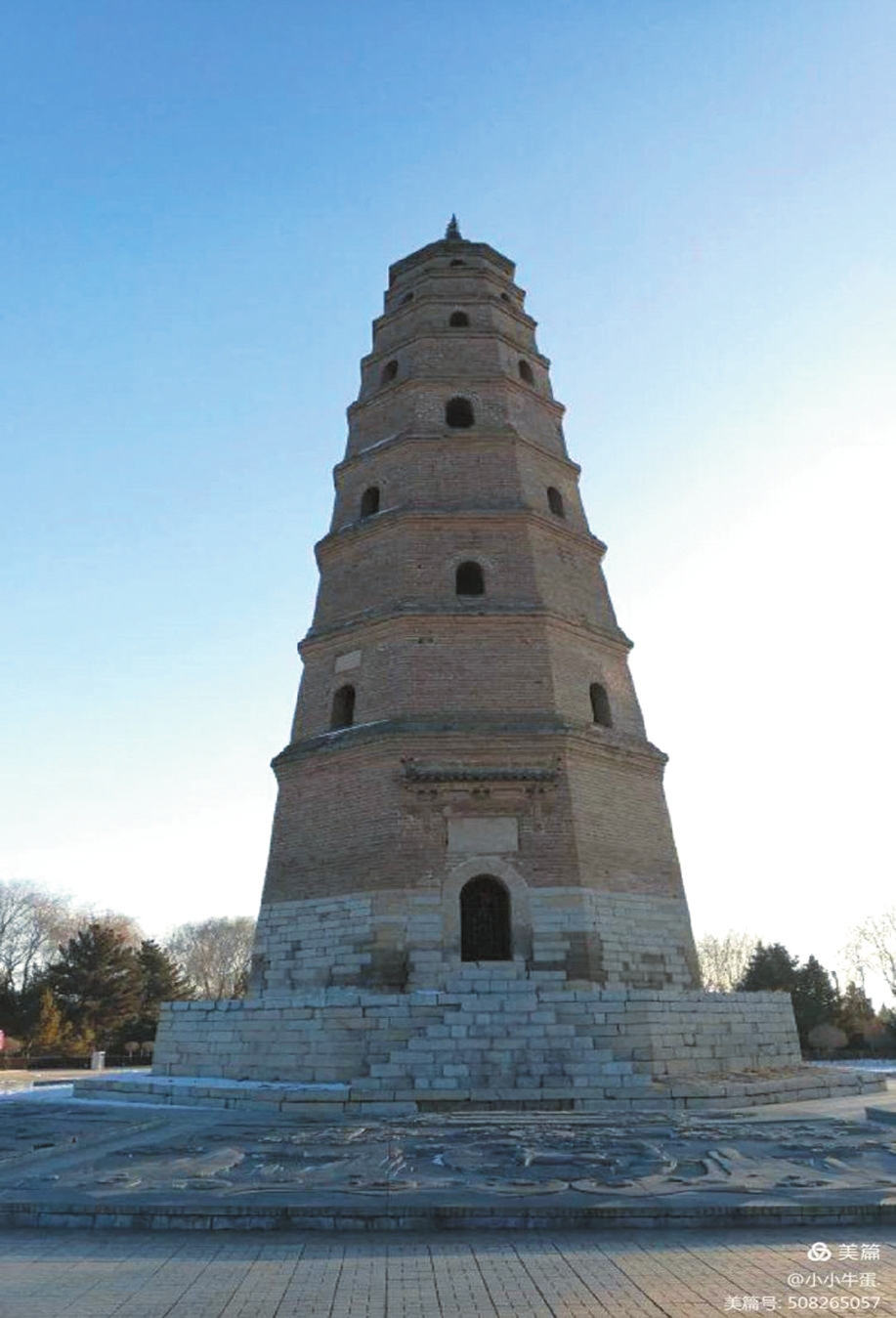 偏關(guān)縣城東山上的文筆塔,又稱“文筆凌霄塔”,是一座保存完好的空心磚塔。始建于明朝天啟元年(1621),原為一座七層磚石結(jié)構(gòu)八角雁塔。崇禎八年(1635)加高四層,共十一層,上書“文筆凌霄”字樣。塔高35米,塔底周長29米。清代咸豐七年(1857)文筆凌霄塔因風雨侵蝕嚴重。新中國建立以后,偏關(guān)人民又重修寶塔。