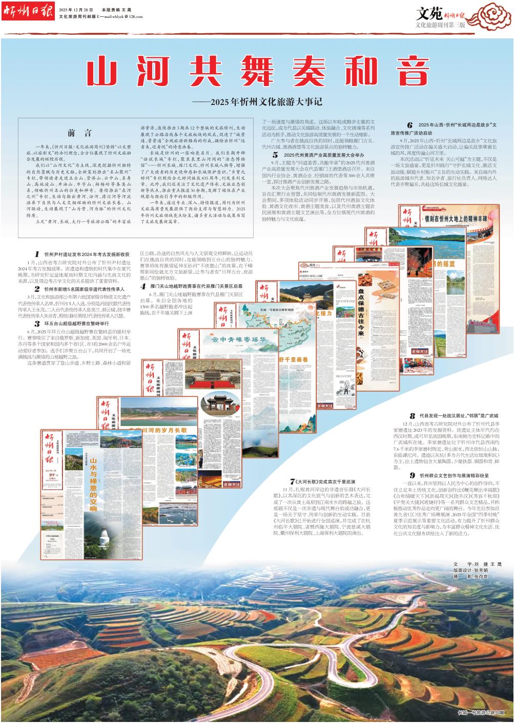 一年來(lái),通過(guò)專業(yè)、深入、持續(xù)報(bào)道,周刊為忻州文旅高質(zhì)量發(fā)展提供了輿論支撐與智慧助力。2025年忻州文旅領(lǐng)域亮點(diǎn)紛呈,諸多重大活動(dòng)與成果書寫了文旅發(fā)展新篇章。
