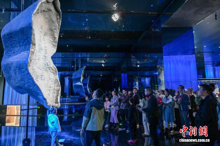 3月8日,四川省眉山市彭山區(qū)江口沉銀博物館迎來(lái)首批預(yù)約觀眾。圖為參觀者在博物館內(nèi)打卡拍照。 記者 劉忠俊 攝