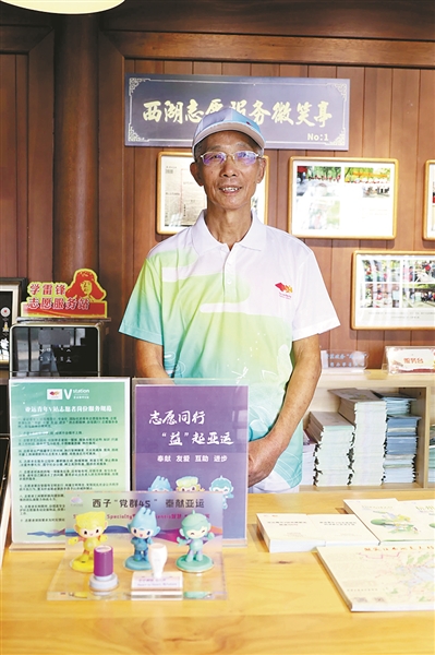 “不培訓(xùn)不上崗,不合格不上崗”,這是亞運(yùn)城市志愿者上崗的“硬要求”,也是景區(qū)志愿者做好服務(wù)的“金名片”。年過(guò)七旬的志愿者施志平,已經(jīng)連續(xù)在西湖邊服務(wù)了11個(gè)年頭?!白罱南词珠g怎么走”“音樂(lè)噴泉在哪里看”“西湖游船哪里可以坐”,這些問(wèn)題他一天不知要回答多少遍,“馬上開(kāi)亞運(yùn)會(huì)了,會(huì)有更多人來(lái)到杭州、來(lái)到西湖,我也希望能夠?yàn)楹贾荻嘧鲂┴暙I(xiàn)?!笔┲酒秸f(shuō),“最近我們也從年輕人身上學(xué)到了很多技能,尤其是英語(yǔ),希望到時(shí)候能為大家提供更周到的服務(wù)?!?/p>
