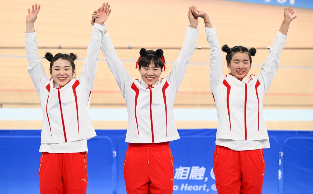 新華社杭州9月27日電(記者馬劍、孫哲)站在淳安界首體育中心自行車館的頒獎(jiǎng)臺(tái)上,獲得杭州亞運(yùn)會(huì)場(chǎng)地自行車女子團(tuán)體競(jìng)速賽金牌的3名中國(guó)隊(duì)選手清一色頂著“哪吒頭”,引來不少中外媒體的關(guān)注。