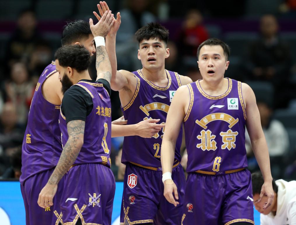 12月27日,北控隊(duì)球員陳國豪(右二)進(jìn)球后和隊(duì)友慶祝。新華社記者 雒圓 攝