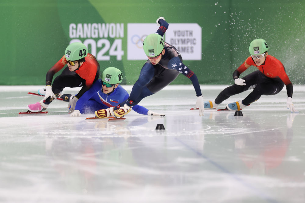 決賽進(jìn)行到最后一圈的最后一個彎道時,美國選手第一個沖線,菲律賓選手在內(nèi)道想要超越張柏浩時失去重心,摔倒時也帶倒了張柏浩。這使得原本排在第四名的張心喆第二個沖過了終點(diǎn),他在冰刀過線時還回頭看向了隊友。