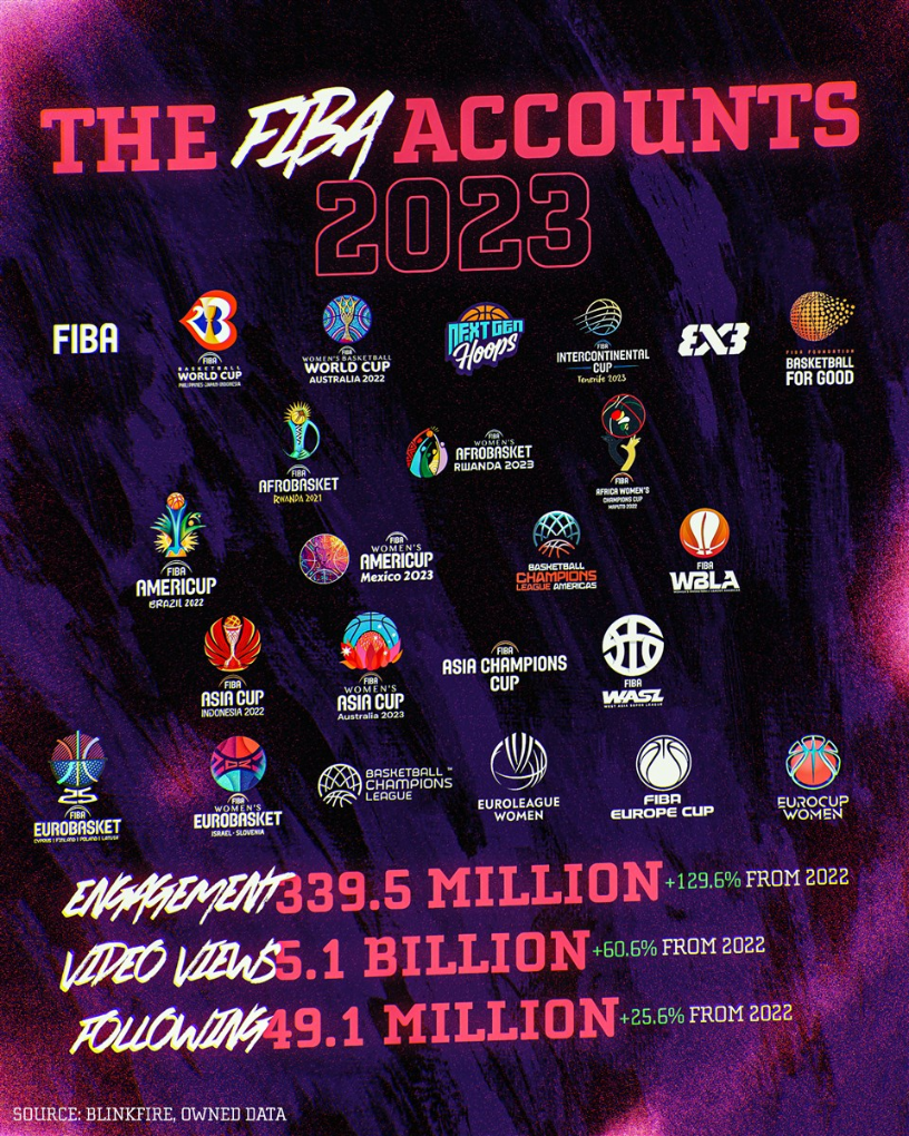 國際籃聯(lián)2023年社交媒體數(shù)據(jù)報(bào)告。圖片來源自國際籃聯(lián)官方網(wǎng)站