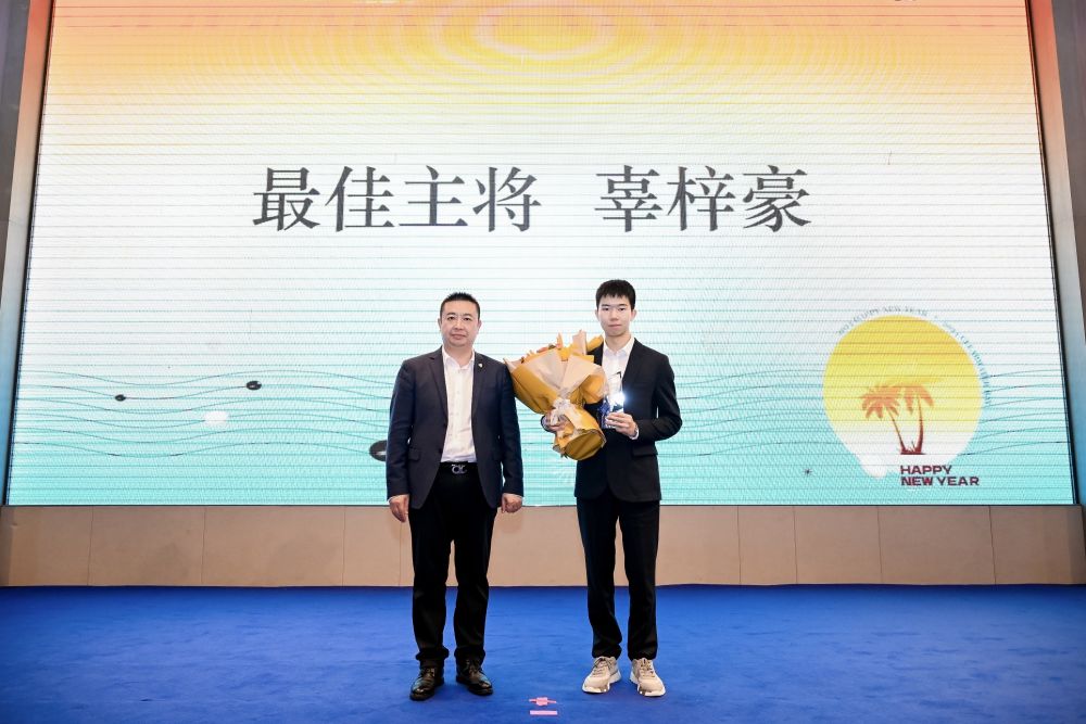 除了本賽季圍甲常規(guī)賽各獎(jiǎng)項(xiàng)外,中國(guó)圍棋協(xié)會(huì)為在2023年各大賽事中有精彩發(fā)揮的棋手設(shè)置了特別獎(jiǎng)。吳依銘、於之瑩、李赫組成的亞運(yùn)中國(guó)女隊(duì)榮膺年度突破獎(jiǎng),她們?cè)诤贾輥嗊\(yùn)會(huì)獲得圍棋女子團(tuán)體冠軍,為中國(guó)隊(duì)奪得歷史上首枚亞運(yùn)會(huì)圍棋項(xiàng)目金牌。辜梓豪憑借在衢州爛柯杯擊敗韓國(guó)名將申真谞奪冠,獲得年度振奮獎(jiǎng)。一年內(nèi)包攬三星杯、LG杯兩大世界冠軍的丁浩獲得年度雙冠獎(jiǎng),成都女子圍棋隊(duì)獲得年度新軍獎(jiǎng)。