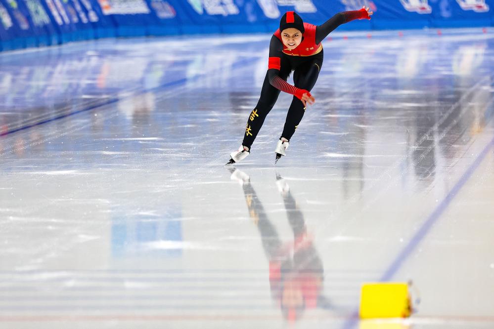 在女子1500米比賽中,該項目冬青奧會亞軍、吉林隊選手劉昀琪展現(xiàn)出良好的競技狀態(tài),滑出1分59秒28,收獲本屆全冬會個人的第二枚金牌。