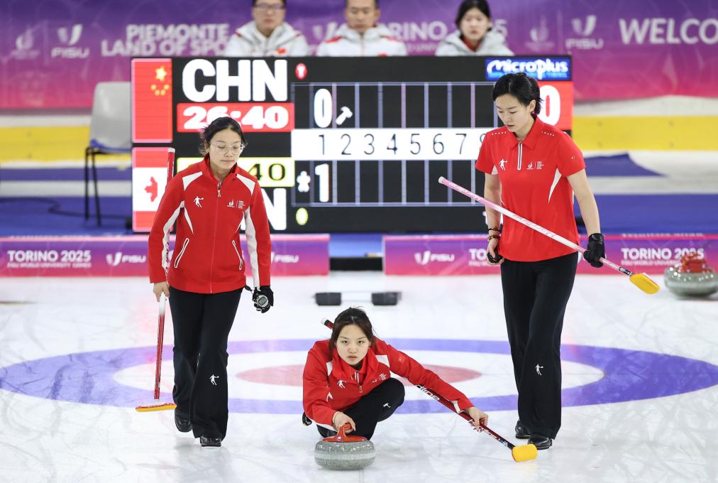 同樣在塔佐利冰上運(yùn)動(dòng)中心進(jìn)行的還有冰壺比賽,由北京體育大學(xué)學(xué)生尹子怡、渠偌萱、譚斯婷、裴君杭、葉紫萱組成的中國女隊(duì),先是在白天的比賽中以4:6不敵日本隊(duì),隨后又在晚間的最后一輪循環(huán)賽中以3:6不敵加拿大隊(duì),最終以5勝4負(fù)的成績(jī)排名循環(huán)賽第五,無緣四強(qiáng)。