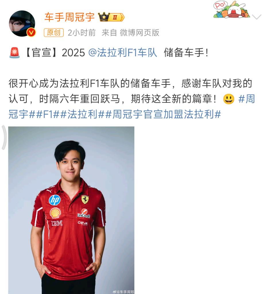周冠宇成為法拉利儲備車手