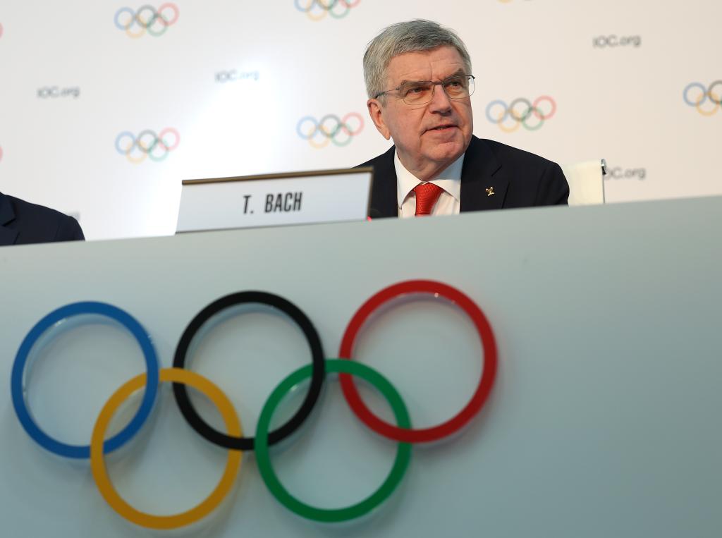 3月17日,國際奧委會主席巴赫在新聞發(fā)布會上。新華社記者 曹燦 攝