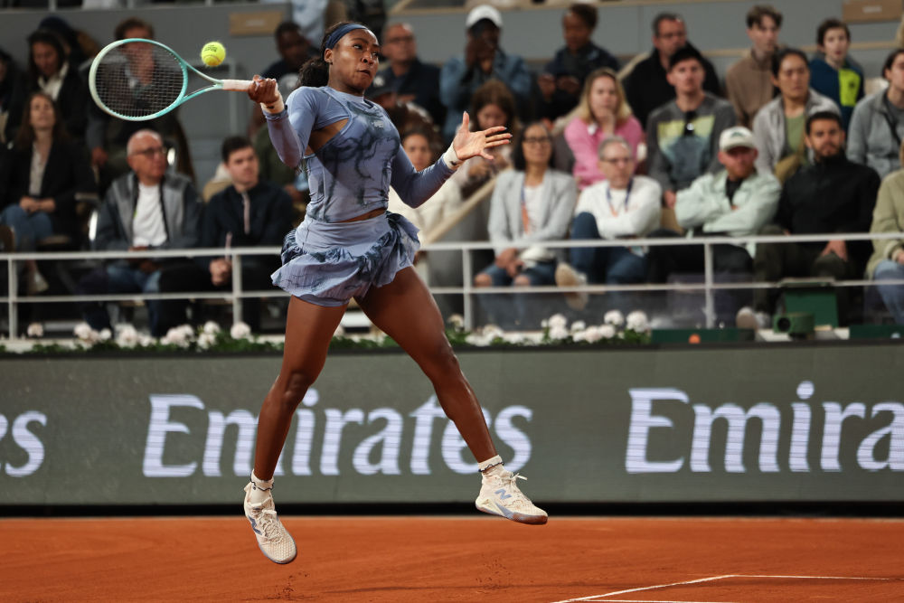 6月4日,高芙在比賽中回球。新華社記者 李京 攝