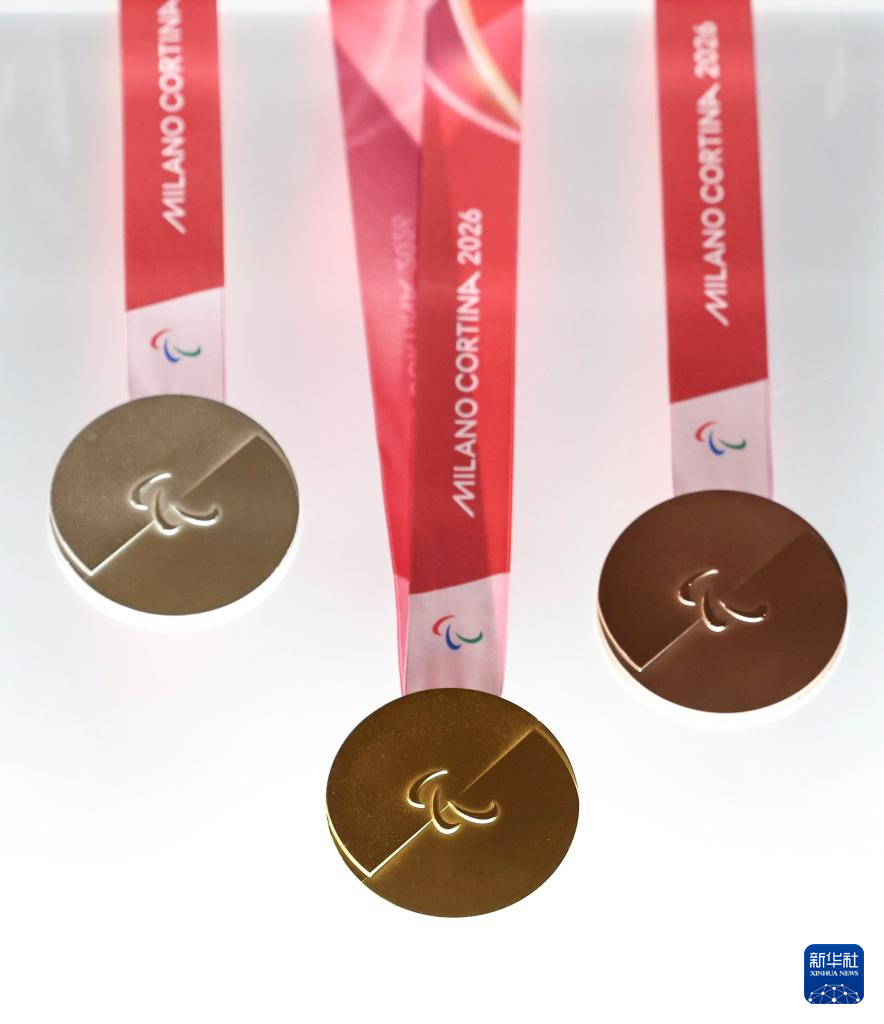 7月15日,2026年米蘭-科爾蒂納冬奧會和冬殘奧會獎牌在意大利威尼斯的威尼托大區(qū)政府總部正式發(fā)布。這是發(fā)布活動現(xiàn)場拍攝的2026年米蘭-科爾蒂納冬殘奧會獎牌。新華社記者 李京 攝