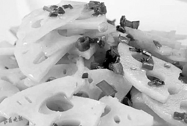 民俗流傳中,人們借助于蓮藕的特征和諧音賦予了它更多的吉祥內(nèi)容。古太原地區(qū)的傳統(tǒng)筵席“八碟八碗”中,有一款坐底大菜——涼拌蓮菜(本地人叫藕根大片)。之所以如此安排,完全就是沿用了諧音吉祥的民俗習(xí)慣?!芭骸迸c“偶”諧音,藕根大片占個(gè)“偶”,有佳偶天生的美好寓意,故而成了八大碗中必不可少的一道菜品?!吧彶恕庇种C音“連財(cái)”,意思是菜上完了,還有扯不斷、沒完沒了的財(cái)運(yùn),八碗帶財(cái)一起來(lái)。寓意如此美好,自然人人都滿意。