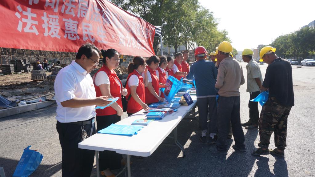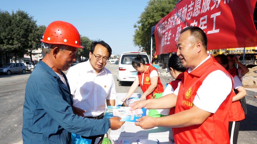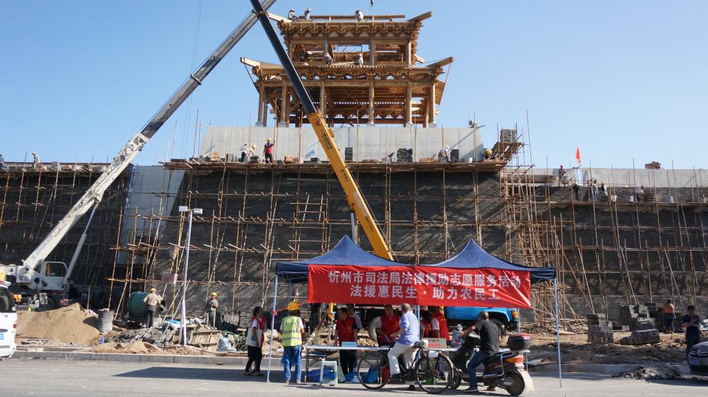 為深入貫徹落實(shí)習(xí)近平新時(shí)代中國特色社會主義思想和黨的十九大及十九屆二中、三中、四中全會精神,貫徹落實(shí)《保障農(nóng)民工工資支付條例》和國家、山西省關(guān)于農(nóng)民工服務(wù)工作的部署,切實(shí)加強(qiáng)我市農(nóng)民工安全生產(chǎn)意識,提高農(nóng)民工的維權(quán)意識和維權(quán)能力,8月13日下午,忻州市司法局組織市法律援助中心、公證處、律師事務(wù)所、司法鑒定中心組成法律援助志愿服務(wù)隊(duì),走進(jìn)忻州古城建筑工地現(xiàn)場,開展了“法援惠民生·助力農(nóng)民工”法律援助志愿服務(wù)活動。