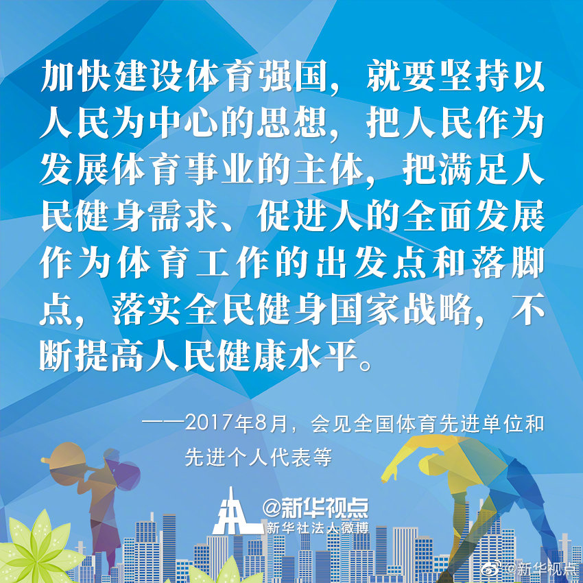 今年8月8日是我國(guó)第12個(gè)“全民健身日”。黨的十八大以來(lái),以習(xí)近平同志為核心的黨中央高度重視關(guān)心體育工作,謀劃、推動(dòng)體育事業(yè)改革發(fā)展,將全民健身上升為國(guó)家戰(zhàn)略,推動(dòng)全民健身和全民健康深度融合。今天,一起來(lái)重溫習(xí)近平總書(shū)記關(guān)于推進(jìn)全民健身、體育強(qiáng)國(guó)事業(yè)的金句?