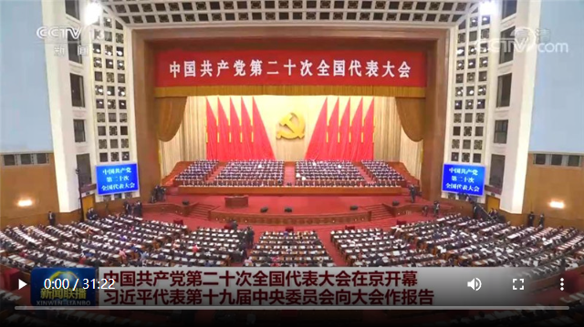 10月16日,中國(guó)共產(chǎn)黨第二十次全國(guó)代表大會(huì)在北京人民大會(huì)堂開(kāi)幕。習(xí)近平代表第十九屆中央委員會(huì)向大會(huì)作報(bào)告。新華社記者 饒愛(ài)民攝