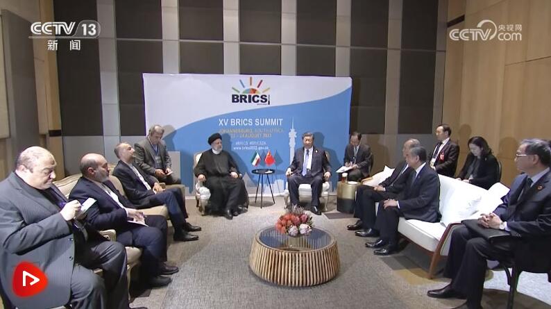 當(dāng)?shù)貢r(shí)間8月24日上午,國(guó)家主席習(xí)近平在約翰內(nèi)斯堡出席金磚國(guó)家領(lǐng)導(dǎo)人會(huì)晤期間會(huì)見伊朗總統(tǒng)萊希。