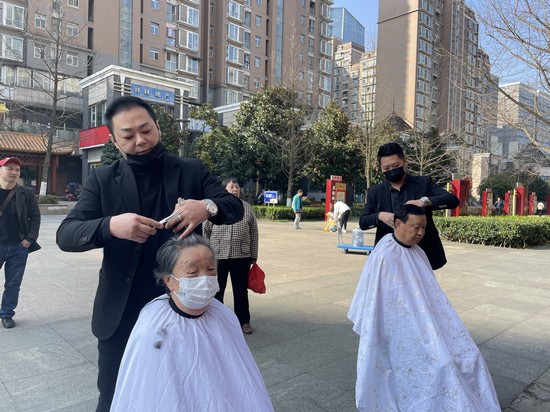 理發(fā)店為居民提供義剪服務(wù)。金元社區(qū)黨總支供圖