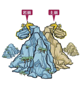 2.遭遇高速滑坡時,如滑坡呈整體滑動時,迅速抱住身邊的樹木等固體物體,也可以躲避在結實的障礙物下。不能將避災場地選擇在滑坡的上坡或下坡。