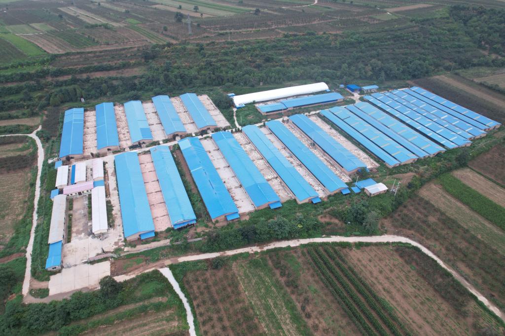 陜西省潼關(guān)縣歐家城村占地120畝的肉鴨養(yǎng)殖場航拍照片。(受訪者供圖)