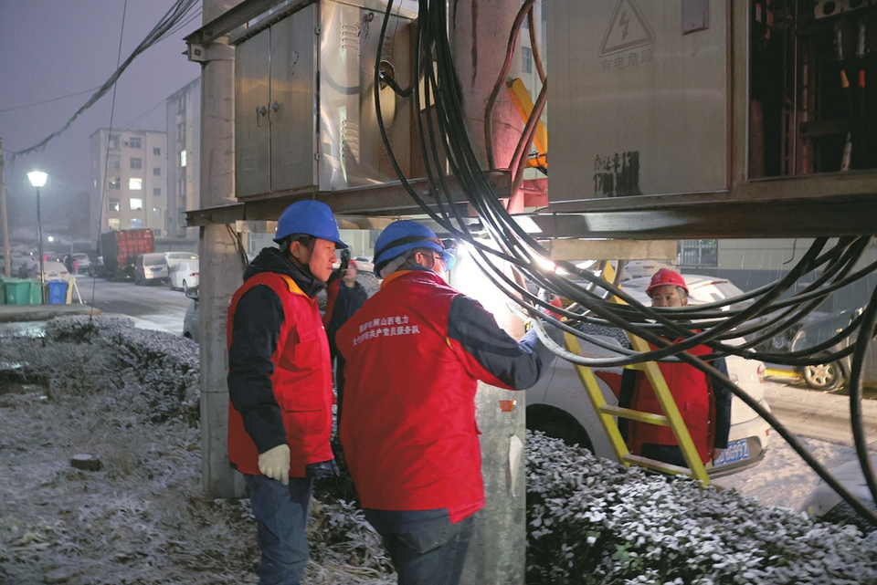 1月26日,國(guó)網(wǎng)山西電力(長(zhǎng)治沁縣)太行黎明共產(chǎn)黨員服務(wù)隊(duì)工作人員正對(duì)供電線(xiàn)路和設(shè)備進(jìn)行巡檢。張高峰 張玉林?jǐn)z