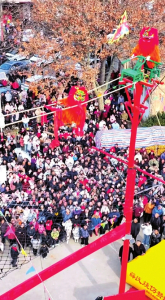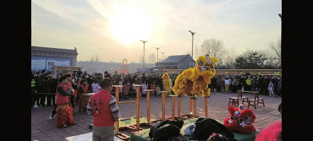 春節(jié)期間,永濟(jì)市虞鄉(xiāng)鎮(zhèn)土樂村村民自發(fā)組織的民間藝術(shù)團(tuán),向省內(nèi)外游客表演省級非遺項目——永濟(jì)空中飛獅。