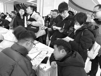2月5日,正月初八,太原市新春首場大型招聘會在山西太原人力資源服務(wù)產(chǎn)業(yè)園拉開帷幕。上午9時許,現(xiàn)場的求職者便已經(jīng)比肩接踵,全力奔赴各自心儀的企業(yè)展位?!皪徫欢啵舐氄咭捕?,感覺比過年時逛廟會還熱鬧?!鼻舐氄呲w先生笑著說。