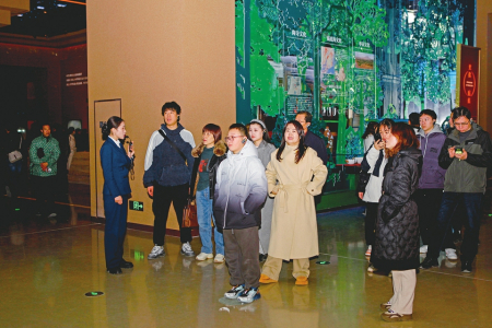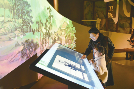 2月8日,運(yùn)城市河?xùn)|歷史文化展示中心內(nèi),游客正在數(shù)字互動屏幕前駐足查看歷史資料。楊晨玉攝